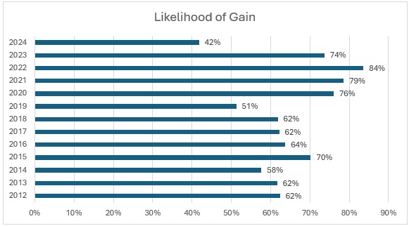 Figure 2. Medicaid Managed Plans Likelihood of Gain, 2012‒2024 (39 States, DC)