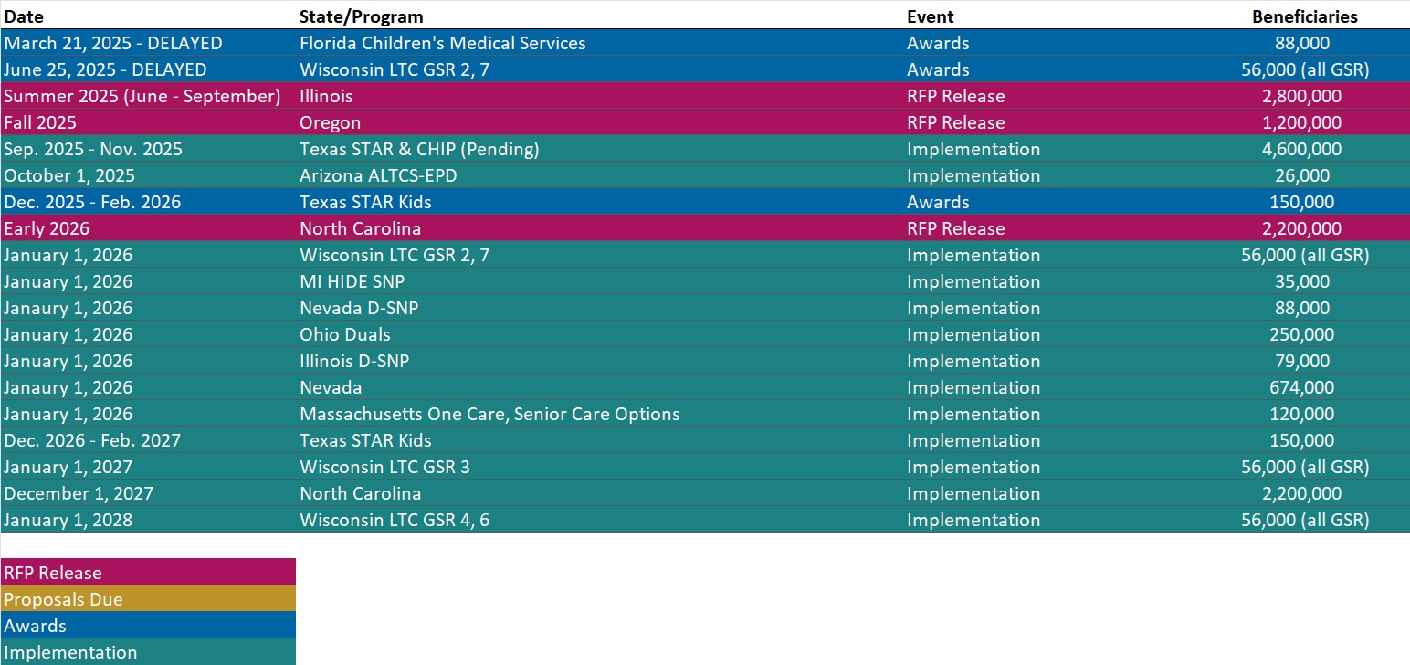 - New Medicaid enrollment, RFP documents, and other market intelligence resources for dozens of states