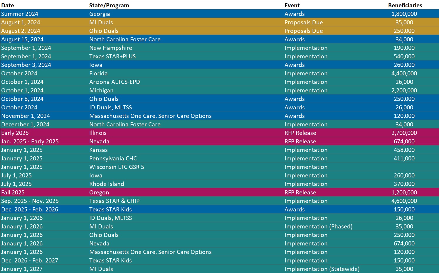 - State-by-state overviews and analysis of latest data for enrollment, market share, financial performance, utilization metrics and RFPs