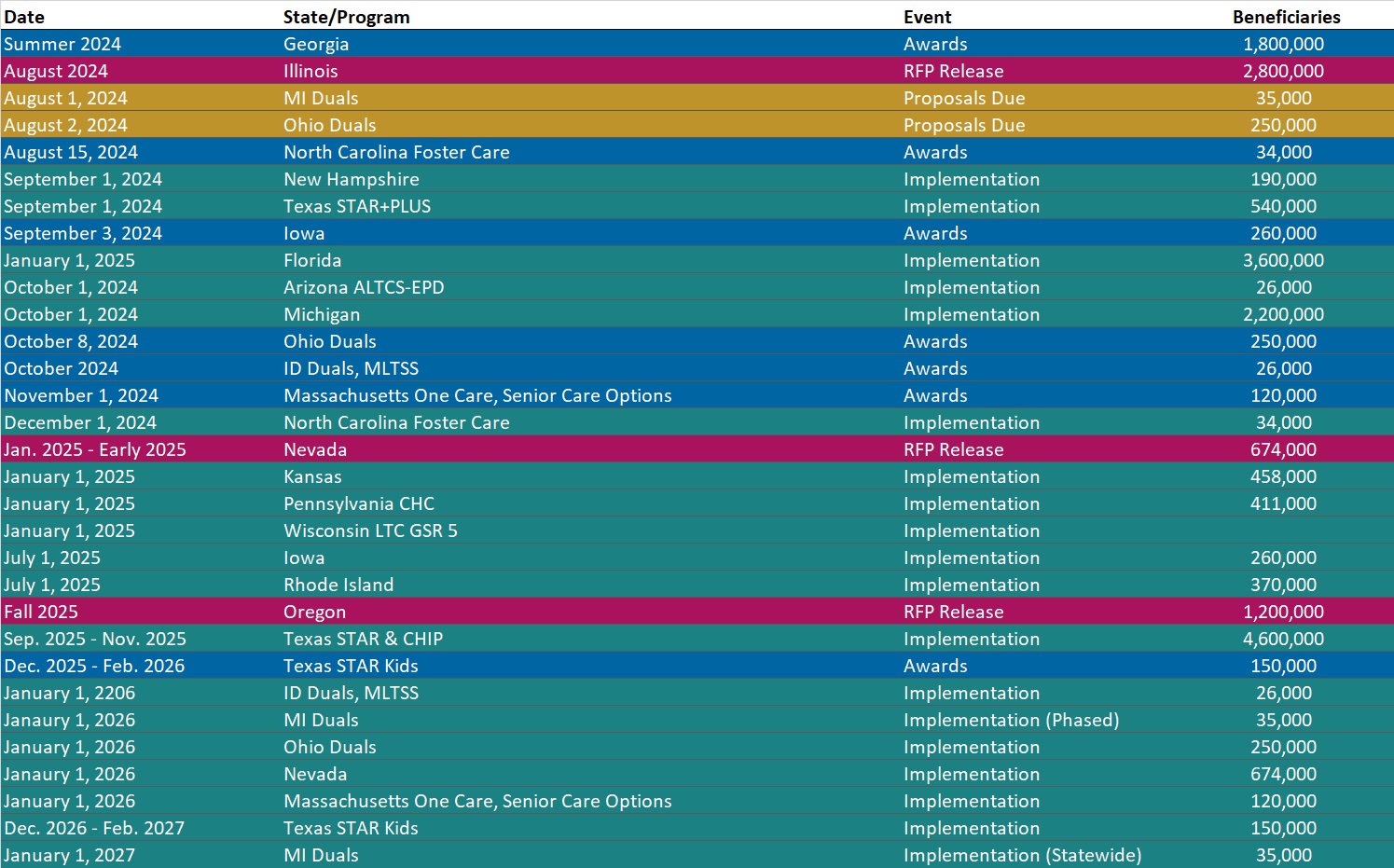- State-by-state overviews and analysis of latest data for enrollment, market share, financial performance, utilization metrics and RFPs