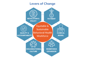 The recommendations focus on the intersection of the levers of change and how they affect the behavioral health workforce crisis: